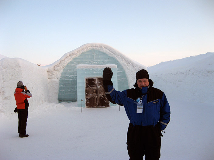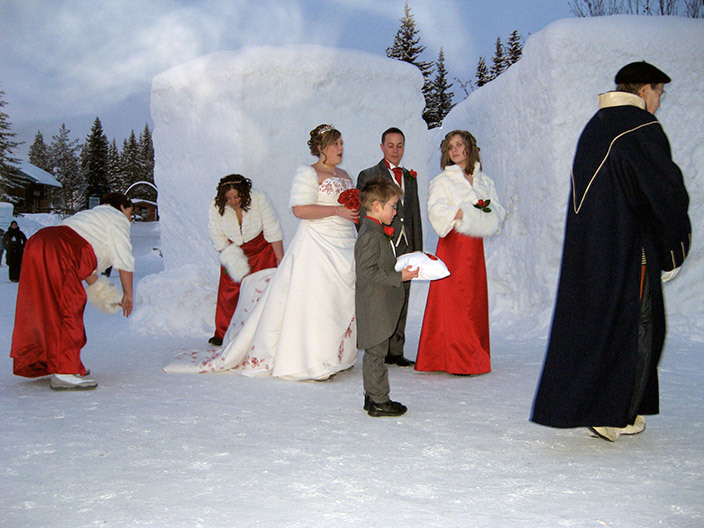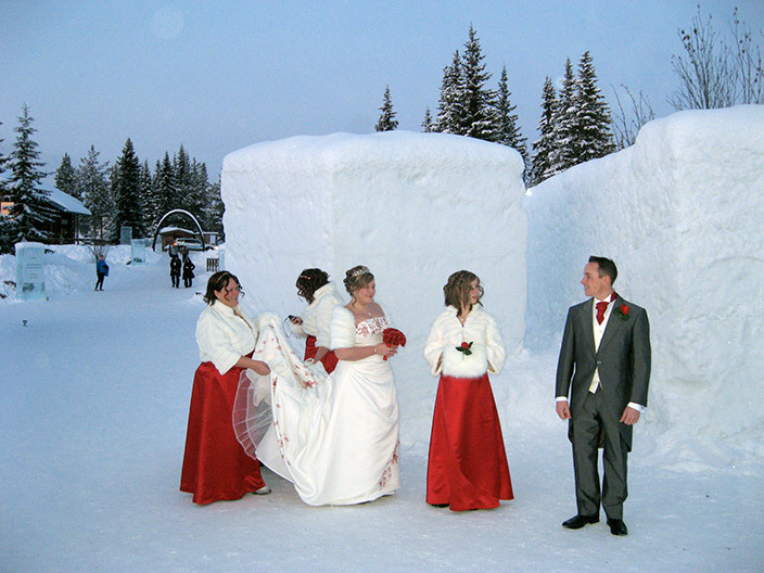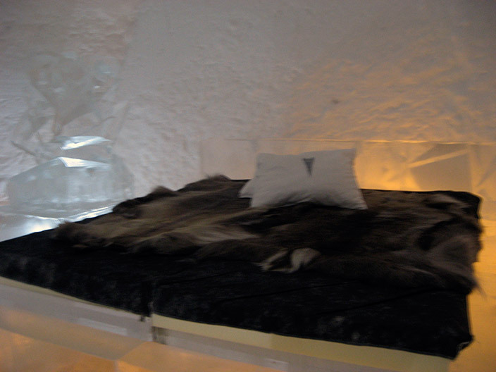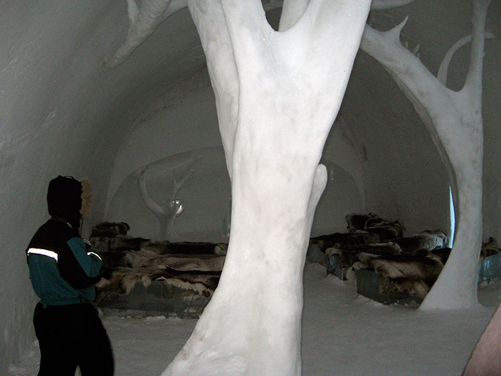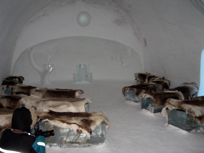 Но вернемся к свадьбе. Рядом с отелем стоит ледяная часовня. Венчание, а потом банкет в ледяном баре. А в отеле для молодоженов отвели специальные ледяные покои и двухместный спальный мешок XXXL.