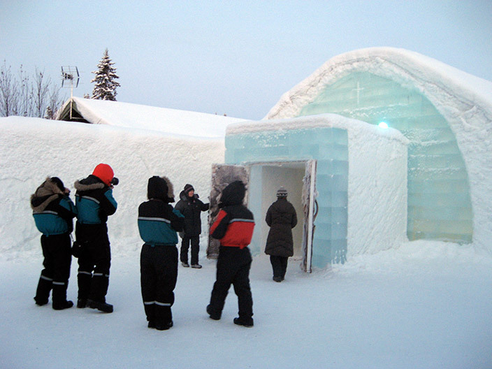 Открыт Ледяной отель с середины декабря до середины апреля. Потом лед тает, и зимой из-под особых ледовых пил появляется новый дворец Снежной королевы.