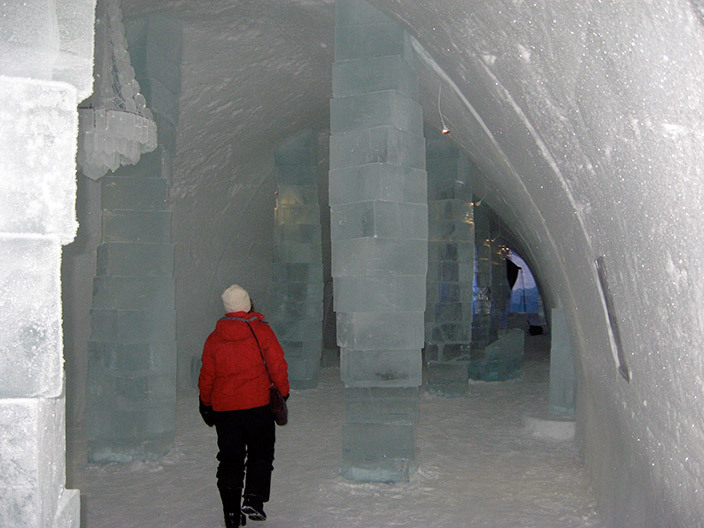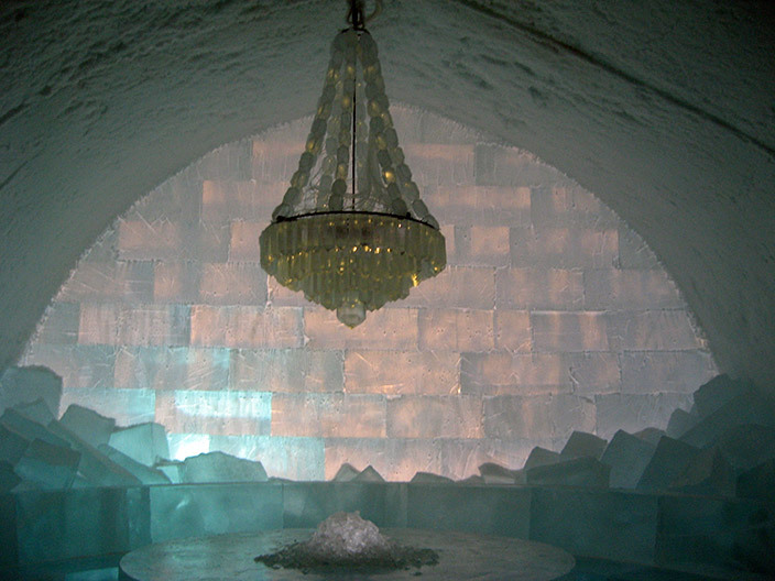 Ледяной отель – главная достопримечательность поселка Юккасьярви заполярного города Кируна. Это настоящий снежный дворец в чистом поле. Залы с ледяными колонами, люстры из льда. Кельи с ледяными стенами, глыбой льда вместо кровати и таинственной зеленоватой подсветкой.