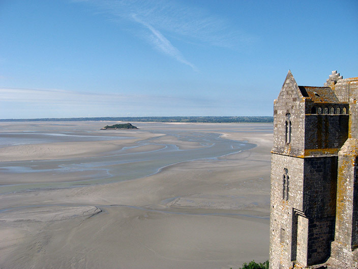 Гранитная скала примерно километр в диаметре окружена водой. А над ней почти на 100 метров уходит вверх средневековая крепость. Здесь самый высокий, около 9 метров, морской прилив Европы.