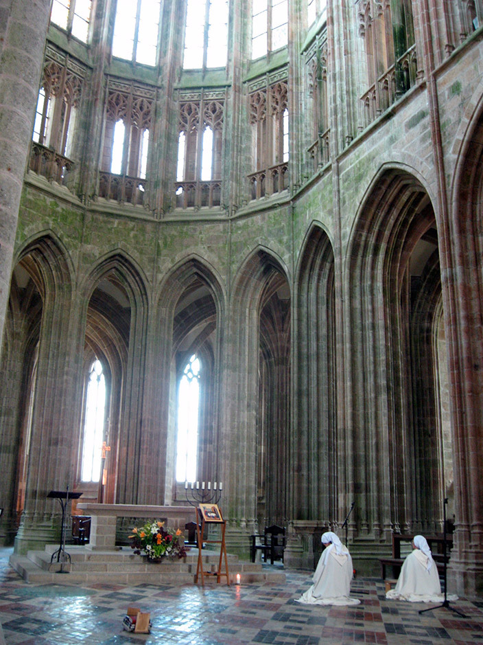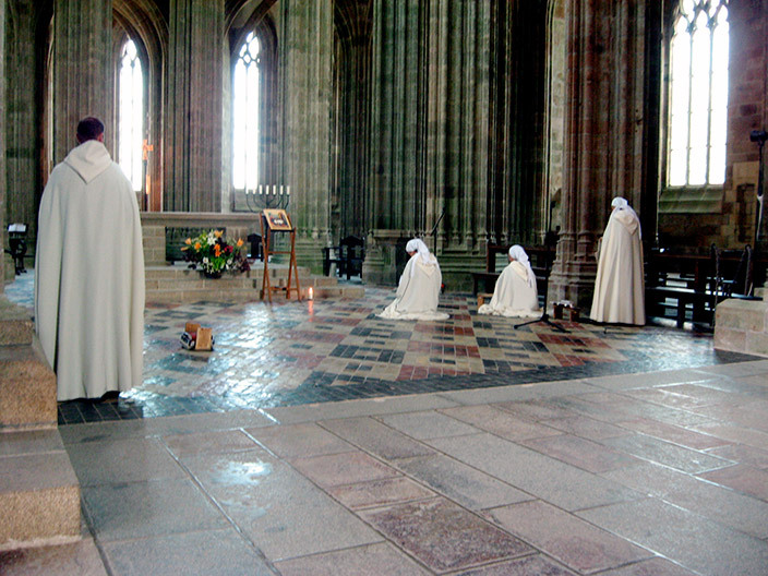 Аббатство вновь открылось лет сорок назад, в нём полсотни монахов-бенедиктинцев. Мужчины и женщины, все в белом.