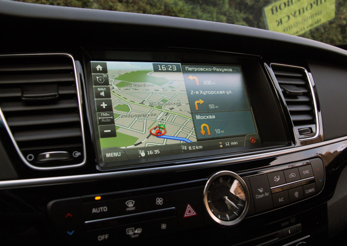 Еще одна функция, которой в Kia по-настоящему могут гордиться, — это проекционный дисплей. До Quoris только одной немецкой компании удалось сделать дисплей на лобовом стекле четким, ярким и не раздражающим. Справились с задачей и инженеры Kia. Показания читаются легко, резкость на высочайшем уровне, и, главное, изображение не скачет. К тому же, после модернизации проекционный дисплей научили выводить и показания навигационной системы.