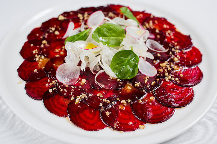Бренд-шеф I Like Bar, I Like Wine и Beer&Brut Дмитрий Париков постится сам, а потому творит и импровизирует с персональной симпатией и пущей убедительностью: в I Like Bar переосмысливает пшенную кашу, замешивая ее на кокосовом молоке и отправляя в печь с тыквой, водит дружбу народов, предлагая зеленую редьку в азиатском стиле, брачует копченую свеклу с кремом из тофу в салате, командирует в супы красную чечевицу с ростками кресса и квашеную капусту с лесными грибами, широким жестом определяет на вок гречневую лапшу с овощами и ростками, а на гриль — баклажан с кремом из тофу и жареным кешью.