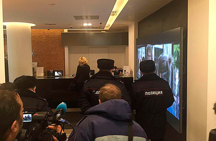 Александра Сидорова корреспондент Business FM «Я смогла пообщаться с двумя людьми. Во-первых, с будущей зрительницей. Девушка купила билет три дня назад на сегодняшний показ в 21.50. Она, узнав о том, что произошло сегодня утром в кинотеатре, решила прийти и посмотреть сама, что же происходит. Ее на входе встретили четыре сотрудника полиции. Двое в штатском и двое не в штатском. На ее вопрос, что здесь происходит и будет ли показ фильма, они отшутились. Потом мне удалось пообщаться с Александром Шепелевым. Это один из членов Ассоциации владельцев кинотеатров. Он мне сообщил, что, собственно, полиция и представители Следственного комитета появились в кинотеатре сегодня после первого сеанса, который был в 11.50. Сеанс закончился, после этого, опять же, журналисты общались со зрителями. Среди зрителей был, кстати, Леонид Парфенов. В тот момент как раз зашли сотрудники полиции, их, по словам Александра, было больше десяти и с ними несколько представителей Следственного комитета. Вышли в итоге полицейские, но сотрудники Следственного комитета вышли не все. Сейчас в кинотеатре идут показы других фильмов. Якобы показ вечером в 21.50 не отменен. Но в то же время по информации инсайдеров, кинотеатру уже выписано первое предписание».