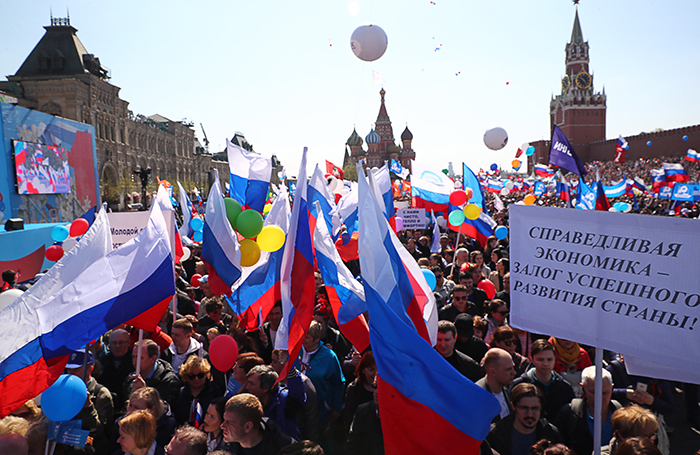 На Красной площади состоялось стотысячное первомайское шествие, организованное Московской федерацией профсоюзов. Главный лозунг — «За справедливую экономику в интересах человека труда».