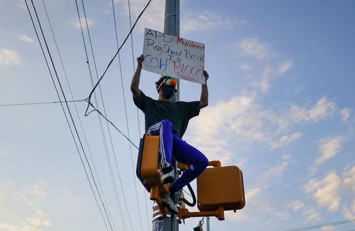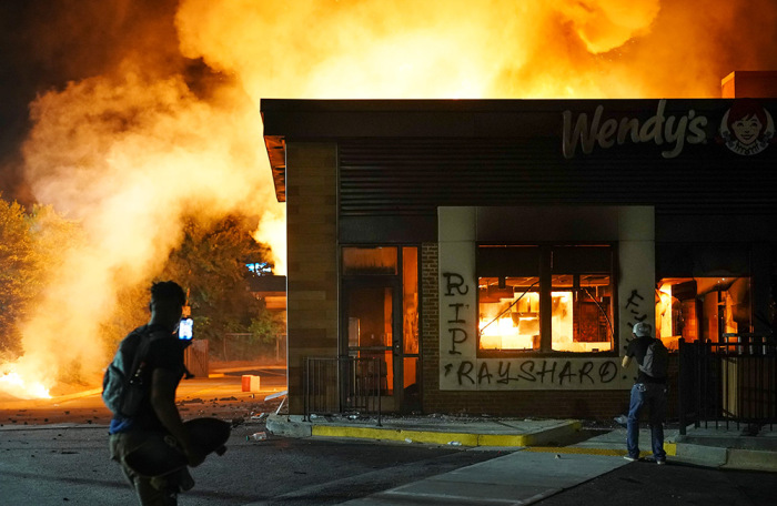 Протесты вспыхнули с новой силой в американской Атланте, штат Джорджия. Они начались у ресторана быстрого питания Wendy's, рядом с которым 12 июня вечером белый полицейский смертельно ранил при задержании афроамериканца Рэйшарда Брукса.