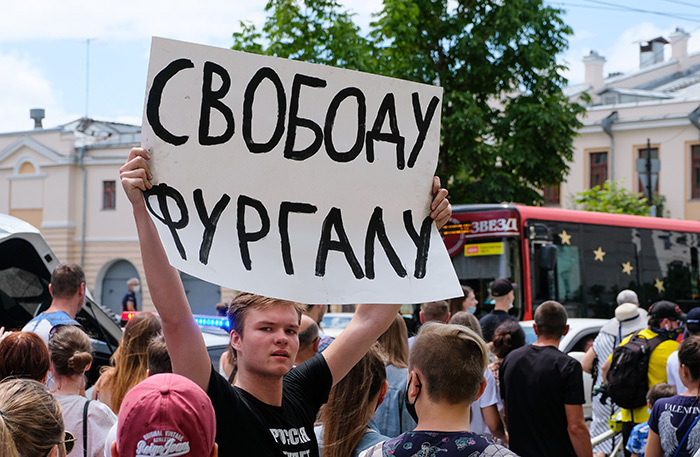 «Знаю, что люди уже за день-два готовились, писали на ватманах. И вчера молодой человек заказал наклейку «ямысергейфургал» и просто написал в интернете: могу вам раздать, приходите, напечатаю несколько сотен наклеек. Я вопрос задал, откуда деньги или еще что-то, он сказал, что ему вот это уже надоело, вот этот беспредел, вот это унижение. Также в разговоре я слышал, что человек потратил несколько тысяч рублей, распечатал наклейки и сам раздал их людям. Понятно, в 1990-е, 2000-е годы какие-то преступления совершались, они и сейчас совершаются. Я допускаю, что человек может какие-то противоправные действия совершать и так далее, но вопрос в другом. Он был депутатом Думы Хабаровского края, потом был депутатом Государственной думы. Все разы, когда баллотируется человек, его очень досконально проверяют на все противоправные действия, уголовные. Но почему он больше десяти лет уже во власти и почему-то все разы пропускались и так далее? Вот это непонятно, почему, если он действительно преступник, где они были 15 лет? Такое мнение у меня по этому поводу».