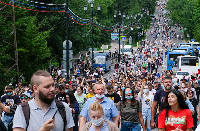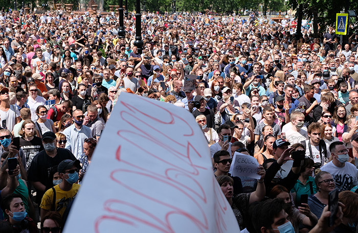 Стихийный митинг состоялся 11 июля в знак протеста против ареста губернатора края, который обвиняется в организации убийств. Ранее СМИ сообщали, что в акции приняли участие до 20 тысяч человек. Она, вероятно, стала самой массовой в истории Хабаровска.