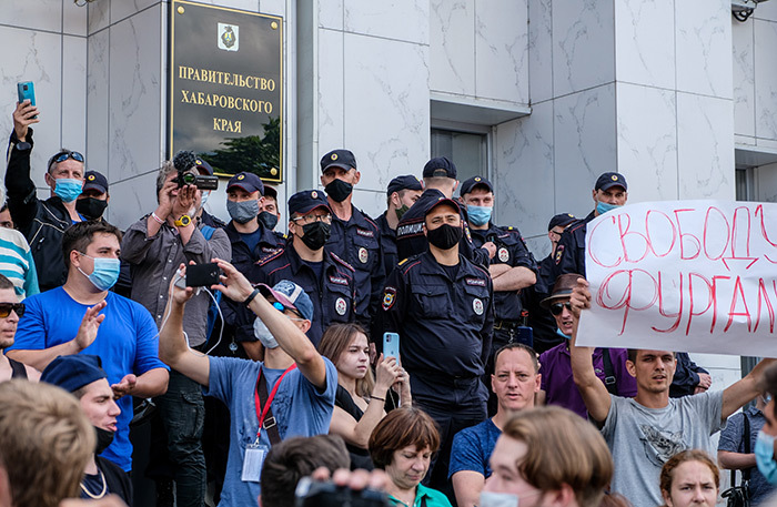 К митингующим выходила пресс-секретарь Фургала Надежда Томченко, призвавшая митингующих не проявлять агрессию. В мэрии Хабаровска подчеркнули, что акция не санкционирована, и напомнили о действующем в городе запрете на массовые мероприятия из-за пандемии.
