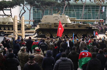 В столице Азербайджана Баку на площади Азадлыг (площадь Свободы) прошел парад, посвященный окончанию конфликта в Нагорном Карабахе. В нем участвовали военнослужащие и военная техника — танки, бронемашины, ракетные комплексы. Под конец пролетели вертолеты и штурмовики.