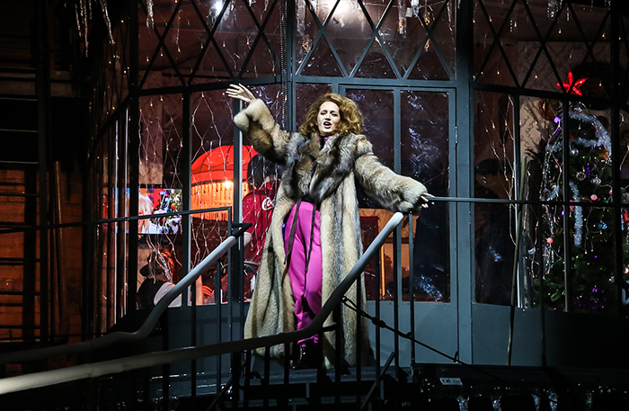 Треплев — безрукий драматург-новатор с зелеными волосами, Аркадина — поп-певица в Louis Vuitton, а Тригорин — поэт-песенник. В Театре имени Пушкина состоялся прогон спектакля «Костик»