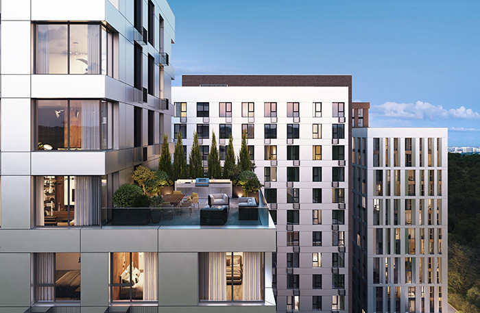 Третья составляющая — еще одно порождение пандемии, и самое правильное для нее название — «безопасный территориальный контур». Нет, речь в данном случае не о видеонаблюдении по периметру или охранниках на въезде. Речь о том, что все в комплексе, от метража и конфигурации квартир до общественных пространств, ландшафтных зон и территорий со спортивным оснащением, должно делать его комфортным для проживания при любом внешнем сценарии — и при «открытых границах», и при частичной удаленке, и даже при полном локдауне.