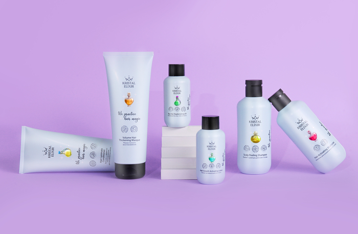 Средства для ухода за волосами и кожей головы предлагает марка Kristal Elixir, запущенная бьюти-блогером Кристиной Дудковой. В линейке несколько продуктов (шампуни, кондиционер, маска), направленных на профилактику выпадения волос и активизацию их роста. В составе — природные компоненты вроде экстракта лопуха и крапивы.