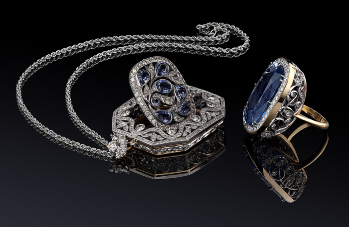 Одно из направлений творчества российских ювелиров — создание коллекций, в которых можно видеть фольклорные и дворцовые мотивы, а также традиционные техники русского ювелирного искусства. И это вовсе не музейные украшения, не историческая стилизация, а современное прочтение. Такие колье, кольца, серьги органично впишутся в любой актуальный гардероб, вечерний или повседневный.