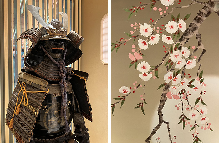 На входе нужно будет снять обувь. Хостес встречает в кимоно, проводит через лабиринт коридоров, в нише стоят настоящие самурайские доспехи «Мару-до ерой». Uchiwa переводится с японского как «военный веер», важная часть обмундирования самурая. Чистота во всем ресторане необыкновенная.