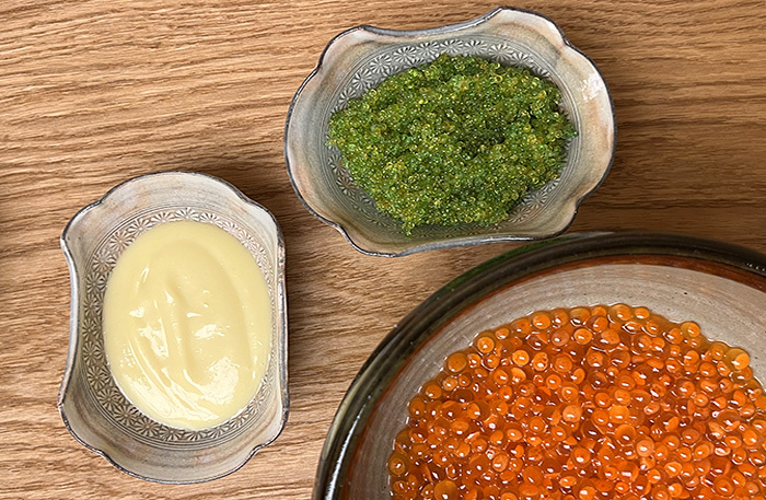 Интерьер еще аскетичнее, чем в Ayu, еще меньше посадок, ресторан на десять человек. Отдача в стиле омакасе — шеф отдает блюда по заранее составленному им лично сезонному меню.
