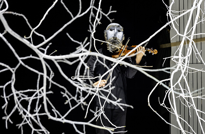 Произведение Пушкина — это, как знает любой российский школьник, цикл из пяти повестей. Произведение Гинкаса — переплетение двух из них, «Метели» и «Выстрела», со стихами и фактами из биографии поэта.