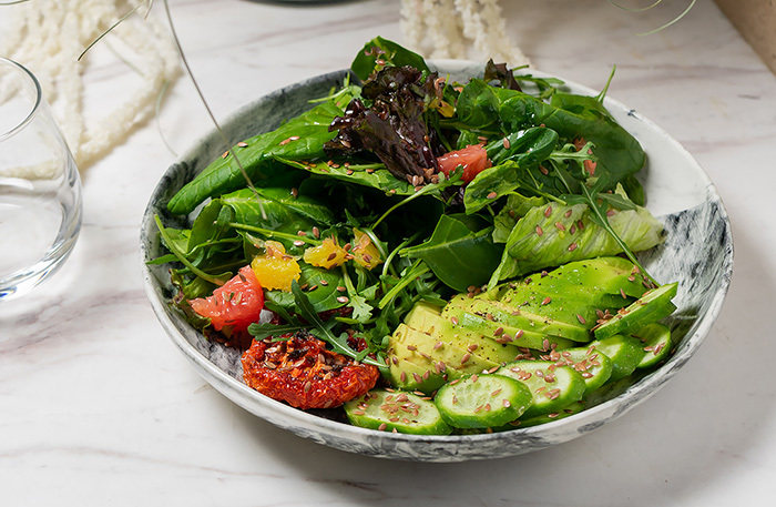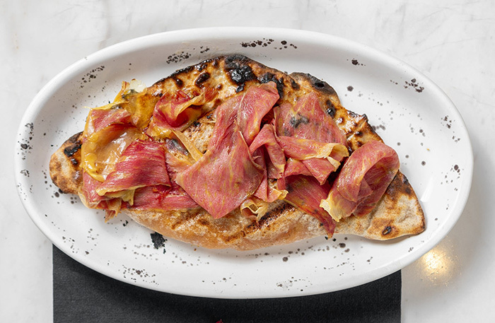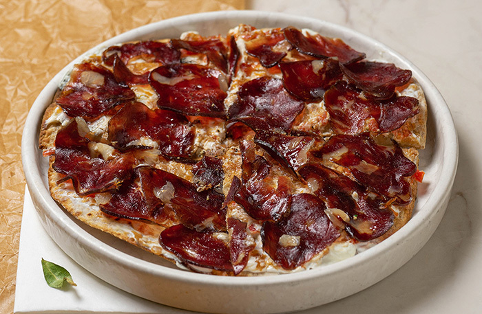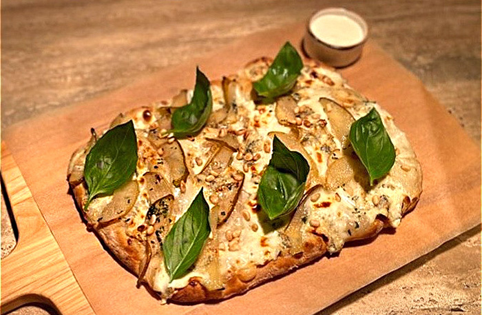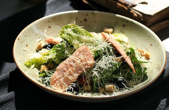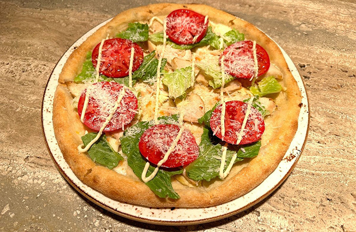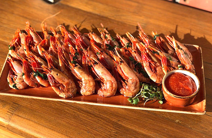 Бежевый интерьер основного зала напоминает петербургский Harvest. Стояла жара, и мы ушли на веранду, которая находится чуть дальше. Не самая уютная веранда в моей жизни, но с полной посадкой. Все меню диджитальное, на планшете. В меню мешанина: татарская кухня, паназия, пицца, четыре (!) вида салата цезарь. Винная карта приятная — есть что выбрать и по бокалам, и в бутылках.