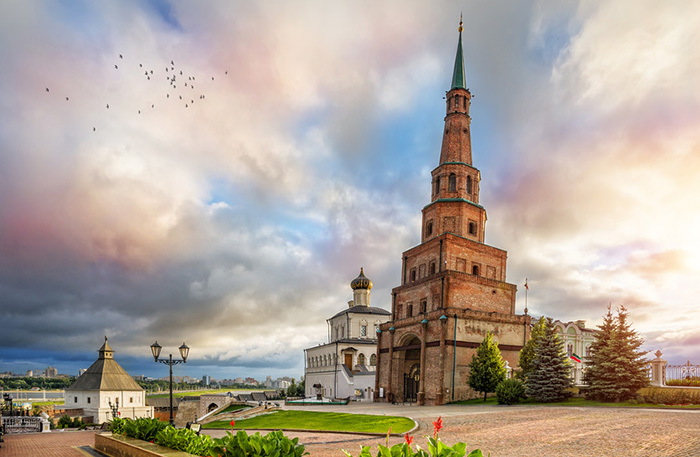На территории кремля расположена знаменитая башня Сююмбике — наша Пизанская башня, которая отклонена от оси на два метра. Сейчас она закрыта для публики.