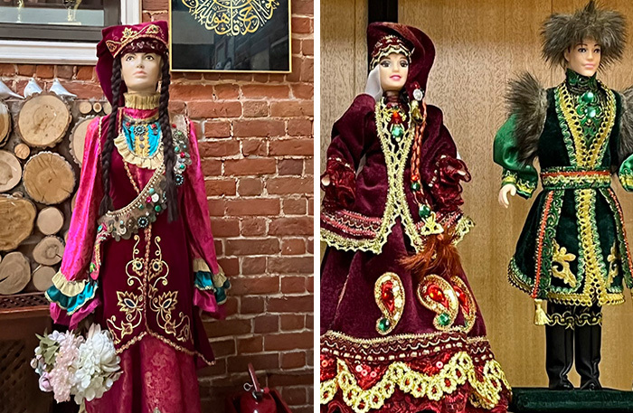 Место, куда исторически везут все делегации. Деревянные ворота с разноцветными узорами, магазинчики с этнической одеждой и продуктами. В отдельном VIP-кабинете накрывают «поляны» президентского уровня, а наша подруга Зухра встречала нас в национальном костюме.