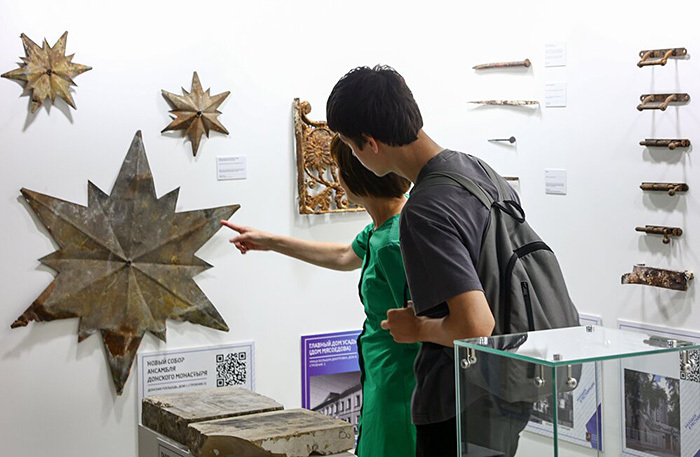 «Есть много профессий, где необходимость каких-то стандартов, каких-то механизмов противопоставляется творческому поиску, неожиданности находок. И люди, исходя из своего образа жизни, тоже разделяются на две эти категории. Вот мы представим стройку, которая вся построена на четких правилах, написанных кровью. Мы любим наших строителей. Мы понимаем, чтобы здание стояло, нужно строго следовать определенным правилам, и отступления не приветствуются. А есть реставрация, которая очень похожа на стройку. Бьюсь об заклад, что со стороны вы не отличите реставратора от строителя. Они похожи своими спецовками. Но реставрация состоит как раз из неожиданностей. Реставратор, даже имея какой-то очень хорошо подготовленный проект, часто не может предугадать, что ему подкинет его профессиональная судьба. И чем более неожиданна находка, тем реставратору интереснее и приятнее», — сказал на открытии выставки первый заместитель руководителя департамента культурного наследия города Москвы, главный археолог столицы Леонид Кондрашев.