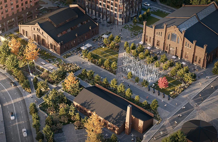 Юлия Гапоненко руководитель по работе с объектами культурного наследия компании Forma «На территории квартала обретет вторую жизнь памятник истории, связанный с декабрьскими событиями 1905 года в Москве: монумент 1959 года в виде бронзовой статуи рабочего со свистком, извещающего о начале революции. Сохранилась и стела из мраморных досок с фамилиями рабочих машиностроительного завода «Кросна», располагавшегося в годы Великой Отечественной войны на территории мастерских и окончательно реорганизованного несколько лет назад. После завершения благоустройства квартала оба артефакта будут возвращены горожанам и установлены в прогулочном сквере. Очень часто исторические предметы становятся декоративным элементом обновленного исторического здания, но иногда артефакты не удается вписать в концепцию пространства. В таком случае по закону они должны быть музеефицированы. Например, мы передали Музею Москвы памятную плиту о декабрьском восстании 1905 года».
