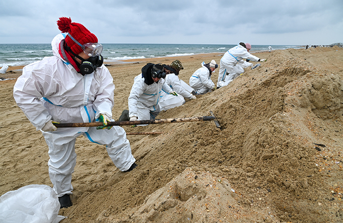 Александр Величко волонтер из Анапы «Уже как 40 дней подряд мы выходим на уборку побережья, что касается фактической ситуации, основные залежи и пласты, которые находили сегодня у прибрежной зоны, уже вымыты, мы их собирали, уже убрали. Сейчас занимаются арендаторы и волонтеры просейкой песка, сегодня на солнце у нас было 19,5 градуса тепла, также мы провели эксперимент по поводу того, как поведет себя мазут при такой температуре. Тот мазут, который уже отлежался эти 40 дней на пляже, у него уже произошло смешение с частичками песка, и он уже стал намного тяжелее, при попадании в воду он тонет, и на береговой линии, если мазут лежит в открытом виде, он уже не течет, что очень хорошо. Но если же его вынести и положить на открытую поверхность, тем более темную поверхность, он начинает растекаться. Вода была плюс 10 градусов, то есть еще довольно холодная, и основной момент будет при прогревании воды хотя бы до плюс 15, мы увидим, что у нас творится в прибрежной зоне на глубинах, возможно, в этот период как раз тот мазут, который не выкинуло штормом, он начнет всплывать».
