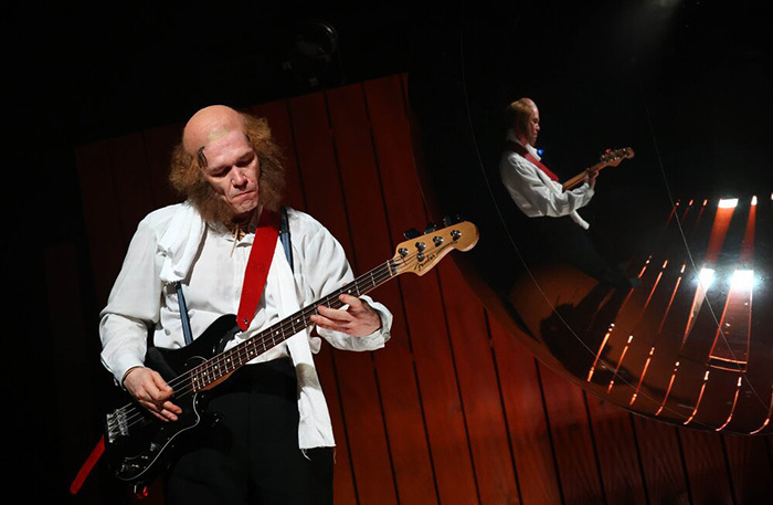 Андрей Гончаров не ставит строгие моральные вопросы, постановка в целом решена в ироничной форме: герои много шутят, общаются со зрителями, неожиданно хватают музыкальные инструменты и начинают петь. В какой-то момент появляются зеркальные шары — свое отражение, а вместе с ним переживания видят и герои рассказа, и зрители. Некий элемент эмпатии и вовлечения.