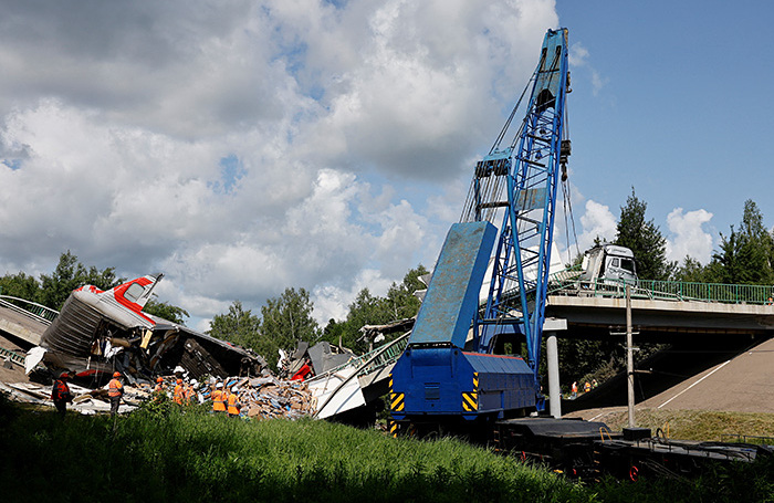 И в третьем часу ночи еще один мост, но уже в Курской области, обрушился, когда по нему двигался грузовой состав. Тепловоз и три вагона поезда сошли с рельсов. У одного из машинистов повреждены ноги, всю бригаду доставили в больницу.