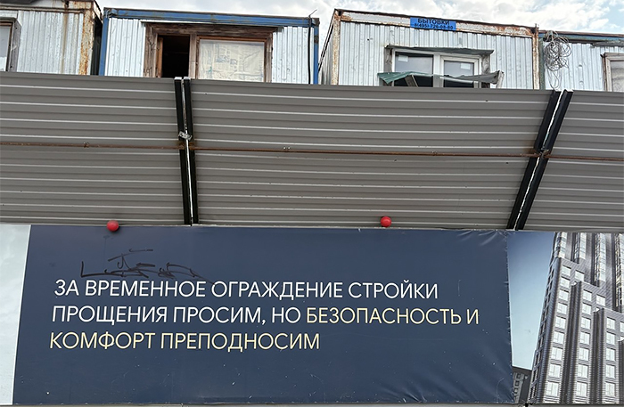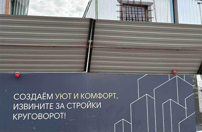 Добавить юмора и поднять прохожим настроение решил еще один девелопер, который облек стандартные извинения за неудобства, причиняемые стройкой, в стихотворную форму. «За неудобство ограждения мы в ответе, но ваша безопасность — в приоритете!», «Создаем уют и комфорт, извините за стройки круговорот!», «За временное ограждение стройки прощения просим, но безопасность и комфорт преподносим», — может, рифмы и не вот тебе, зато настраивают на позитивное отношение и к застройщику, и к его проекту.