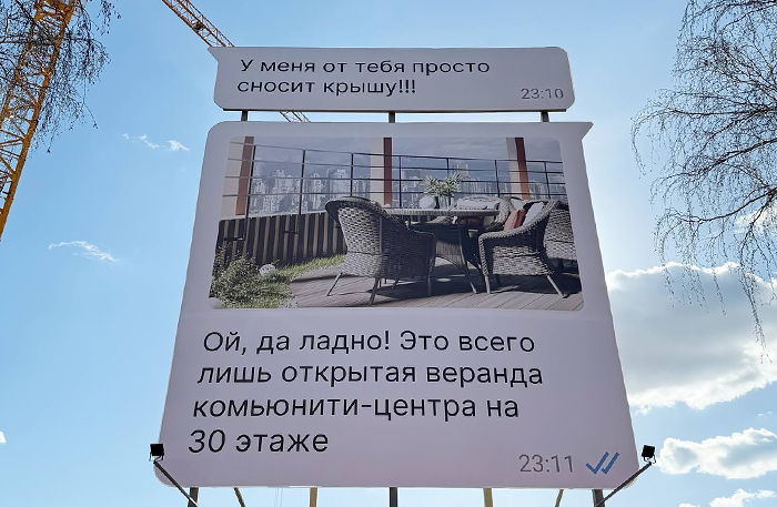 «В нашем флагманском проекте мы хотели подойти к оформлению строительного забора нестандартным способом и вместе с тем отражающим концепцию проекта, а он — про любовь между людьми, душевные отношения в семье, любовь к городу, про те самые теплые уютные ощущения, когда ты возвращаешься каждый день с работы со словами: «Ну, наконец-то я дома!» И мы подумали, что переписка в мессенджерах близких — это прекрасный символ счастливой жизни. Мы добавили в эти милые сообщения немного юмора, зашили УТП проекта и получили на выходе нестандартное решение, которое привлекает внимание прохожих, заставляя улыбаться и поднимая им настроение», — таким опытом поделился с Бизнес ФМ сооснователь компании Baza Development Марк Заводовский.