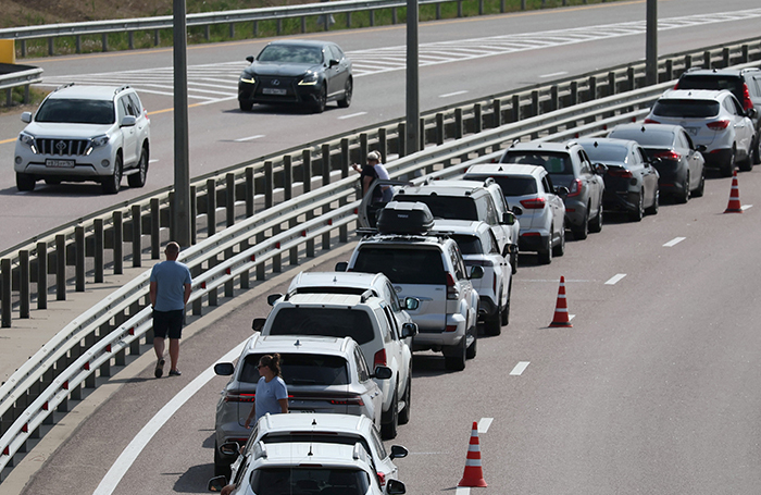 «Едем со стороны Крыма, в пробку мы встали. Ситуация осложняется тем, что абсолютно бесправно, нагло, безнаказанно справа нас обгоняют машины легковые, нарушая знак. Там был знак, что кто едет на мост только по левой стороне. Ну мы практически не двигаемся. Работают посты ДПС. Но они им объясняют, что так делать нельзя. Те кивают. Иногда они их отправляют уходить на другие населенные пункты, но по факту ничего не меняется. Все равно многие вклиниваются, многие идут вторым рядом. Скорее всего, мы будем стоять еще часа три, а то и четыре, чтобы пройти ручной досмотр. Мы на легковом автомобиле».