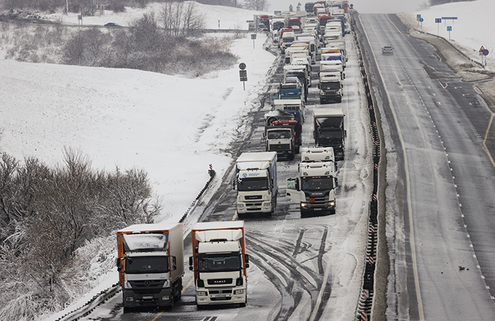 Метель привела к многокилометровым заторам и остановке грузового движения. Водители жалуются на отсутствие своевременной уборки и плохие дорожные условия, помощь оказывают экстренные службы