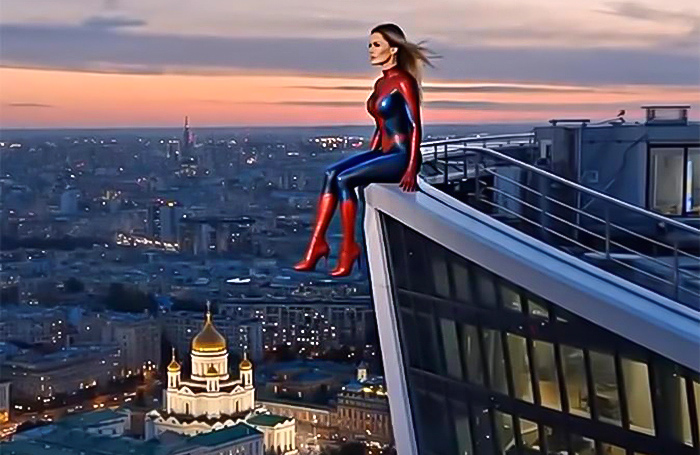 Виктория Боня — теперь в образе супергероя. Блогер опубликовала видеоролик, сгенерированный искусственным интеллектом, где она в костюме Человека-паука сражается с виртуальными копиями Владимира Соловьева, Виталия Милонова и Артемия Лебедева.