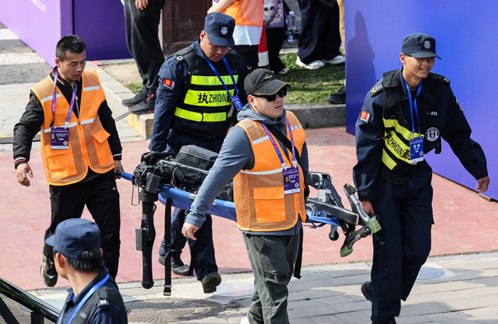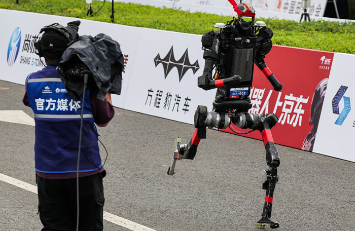 Роботы были на полумарафоне не только участниками, но и помощниками на трассе. Вдоль маршрута дежурили роботы дорожной полиции: они помогали направлять поток бегунов и следить за порядком. Один из таких роботов, разработанный China Media Group, регулировал движение с помощью жестов.