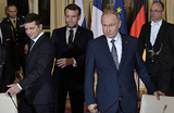 Как прошла встреча Путина и Зеленского в Париже?Первые двусторонние переговоры российского и украинского президентов начались сразу после завершения саммита «нормандской четверки», они длились полтора часа