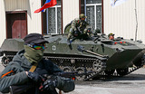 Спецоперация на востоке Украины, очевидно, проваливаетсяОполченцы на украинской бронетехнике, которая перешла к протестующим, приехали из Краматорска в Славянск. Над бронемашинами подняты российские флаги