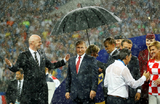 Ливень и зонт Путина: финальные аккорды ЧМВо время награждения после финала Франция — Хорватия пошел настолько сильный дождь, что вымокли в том числе президенты Эммануэль Макрон и Колинда Грабар-Китарович, а также глава FIFA Джанни Инфантино. Зонты сначала получили не все